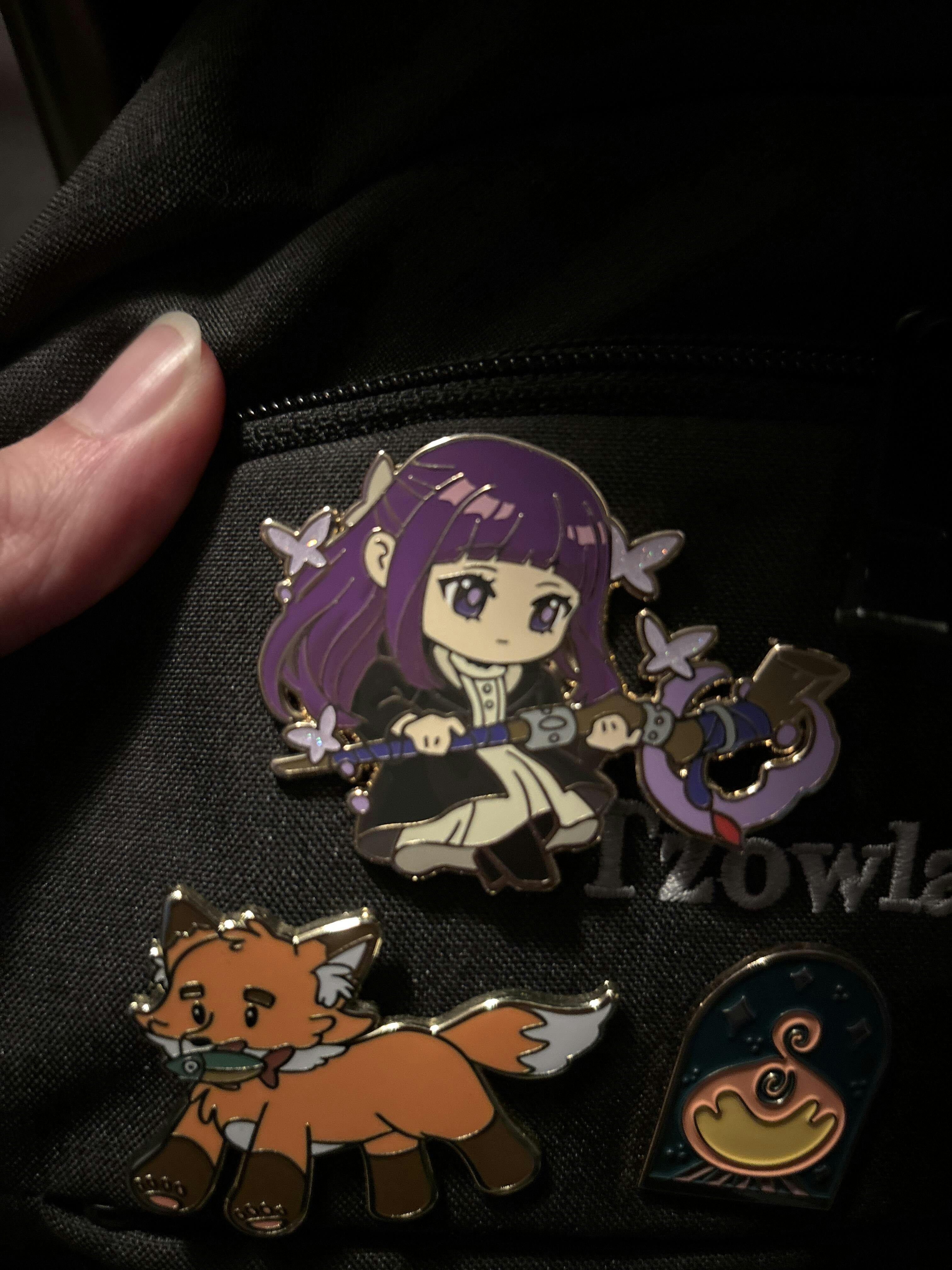 The Frieren Pin just went on backorder due to selling out but will be back in stock early March. If you order the Frieren pin or the set you will get a free sticker with your order of each backorder pin.